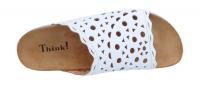 Verspielte, trotzdem schlichte Pantolette von Think mit einem bequemen, anatomisch geformten Tief-Fußbett aus einem Kork-Latexgemisch. Toll ist die Perforation des Blattes, was zur guten Belüftung an heißen Tagen sorgt.