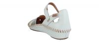 Die Sandale von Pikolinos bedeckt mit braun/goldenen Riemen die Zehen. Hinten sorgt eine Fersenkappe für einen guten Sitz und zusammen mit dem Klettriemen für festen Halt. Die Keilsohle ist angenehm zu tragen. Die komplette Lederausstattung macht den Schuh perfekt zum Barfußtragen.
